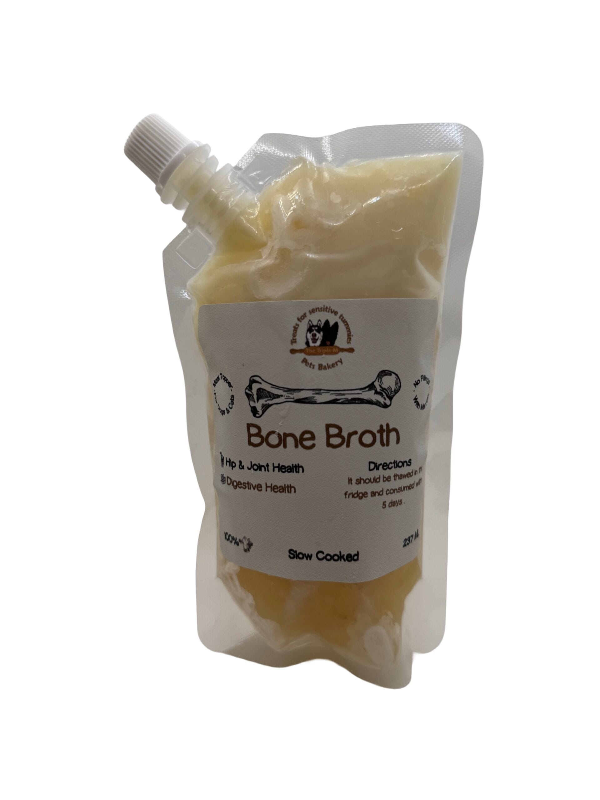 Derived from the slow simmering of beef bones and veggies, a quality source of nutrients including collagen – which is composed of proline, lysine, and glycine, nutrients which have been known to support healthy joints and skin. Glycine plays a role in certain metabolic functions. Premium Grade Bone Broth ! The Triple M Pets Bakery bone broth is made from mixed vegetables to maintain amazing tasty broth plus, the most nutritionist topping ever !